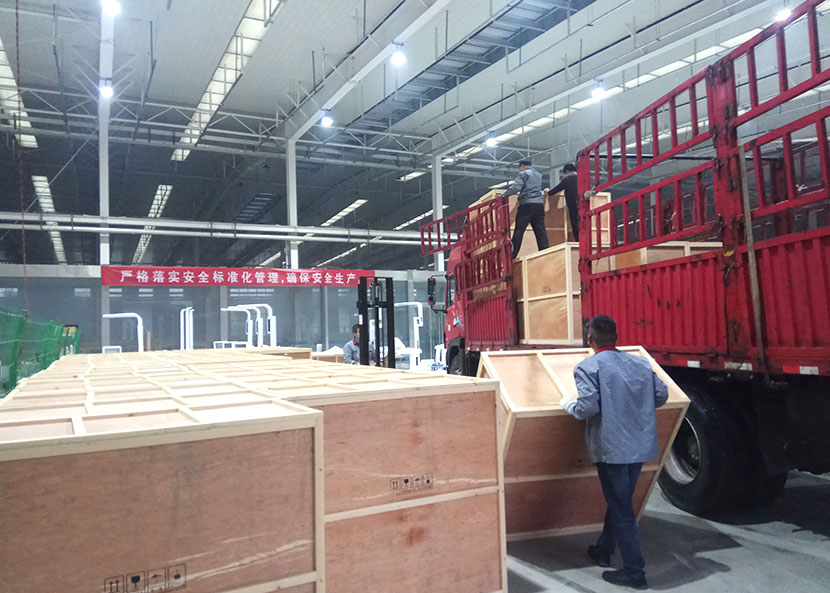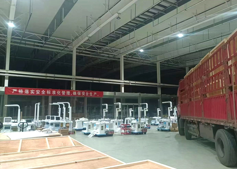 每一台体检机都由独立大型木质包装箱严格密封,以此保证运输过程中设备完好,顺利抵达客户端。夜间,工人们正在加班装车搬运中....